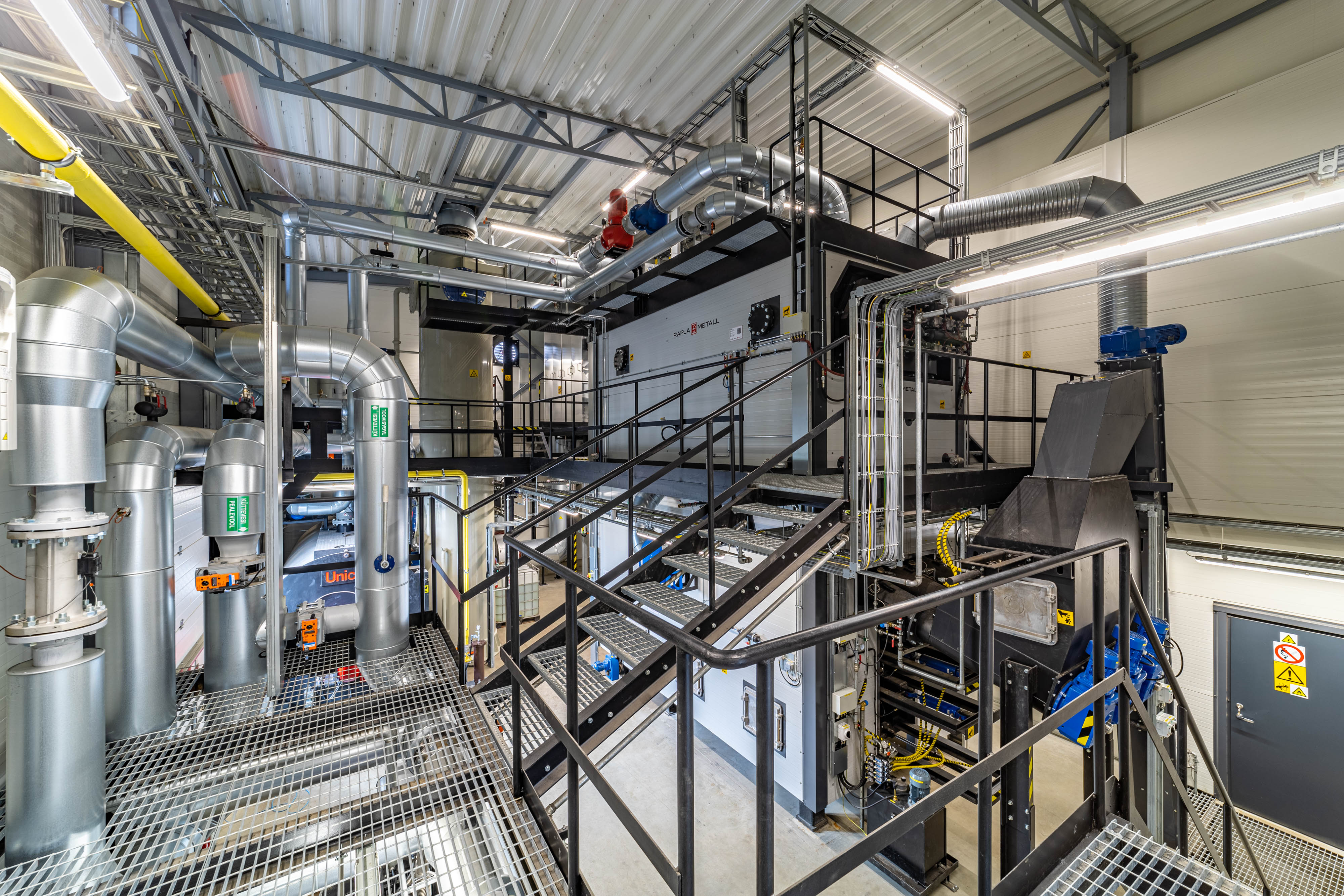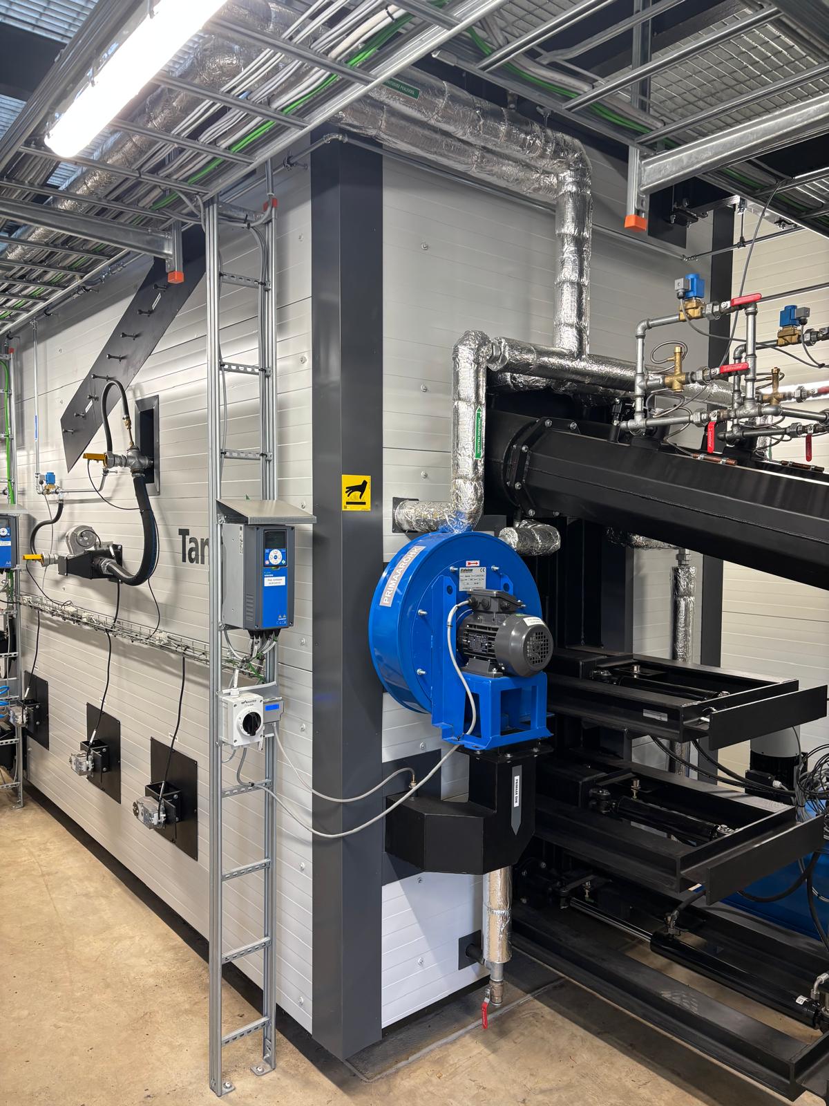 Combustion gases from the grate hearth are directed to the hot water, steam, or thermal oil boiler, where energy transfer occurs. The power range of the technology developed and manufactured by Tamult AS is 1 to 20 MW. Areas of use: district and local heating, combined heat and power plants (CHP), wood industries, pellet mills, etc.