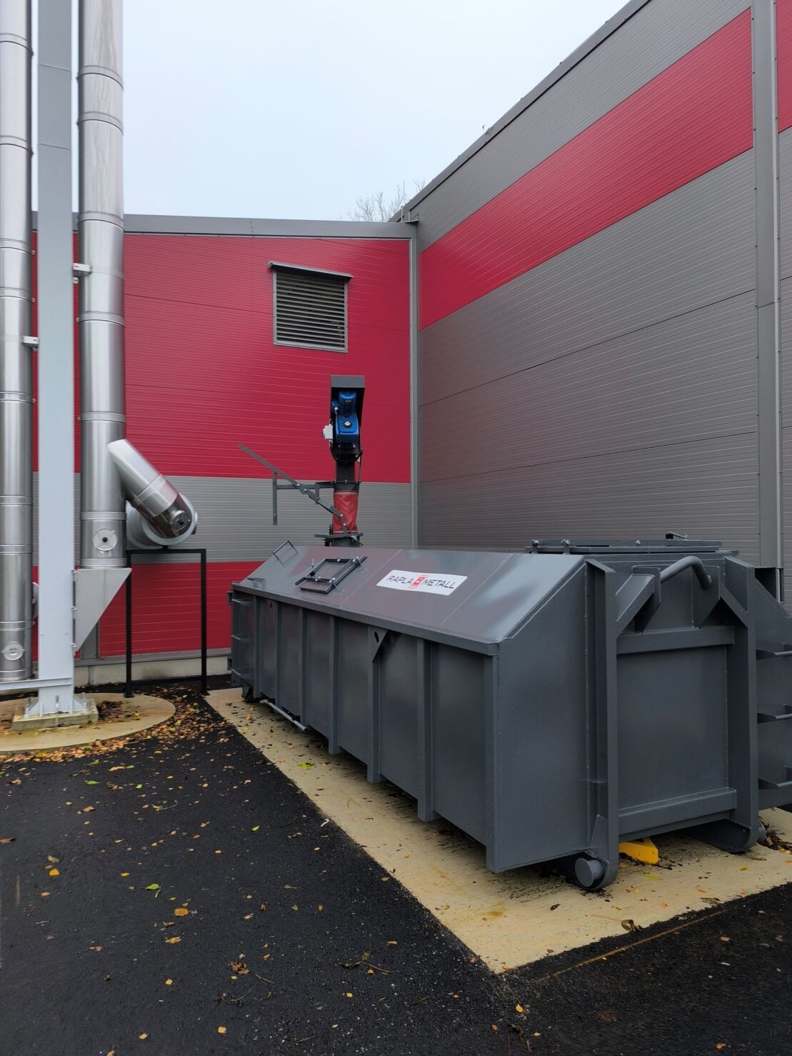 The waste management solution is designed to be fully automatic. The boiler house is equipped with a 10 m³ hermetic ash container with a levelling plug and a fill level sensor. All connections are dust- and leak-proof and the container is serviceable from the ground and lockable, facilitating safe and efficient handling.