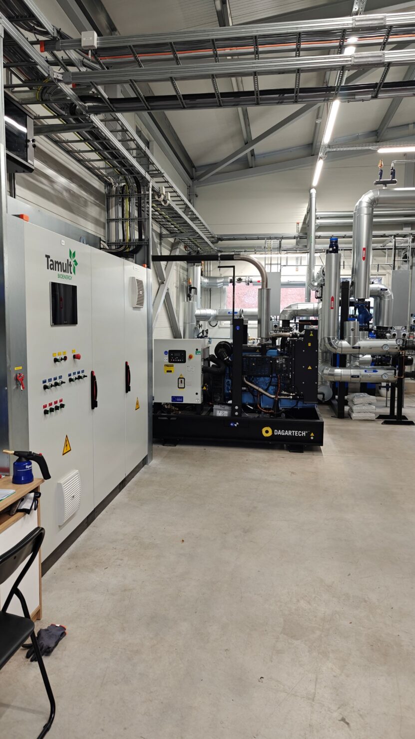 To cover peak and reserve loads, Tamult installed a liquid-fired boiler with a nominal capacity of 0.8 MW and an efficiency of at least 91%. The boiler is equipped with a heavy oil burner, multi-stage control and fully complies with CE marking requirements.