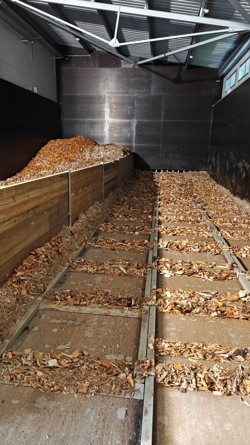A 200 m³ biofuel storage facility was built as a separate fire compartment for fuel handling, allowing the boiler to operate at full load for about one week and at average load for up to two weeks. Fuel is received directly from the truck without the need for an additional loader. The warehouse scraper floor is equipped with a water-fired underfloor heating system, controlled by a floor temperature sensor, with a minimum power of 250 W/m², ensuring reliability even in difficult winter conditions.