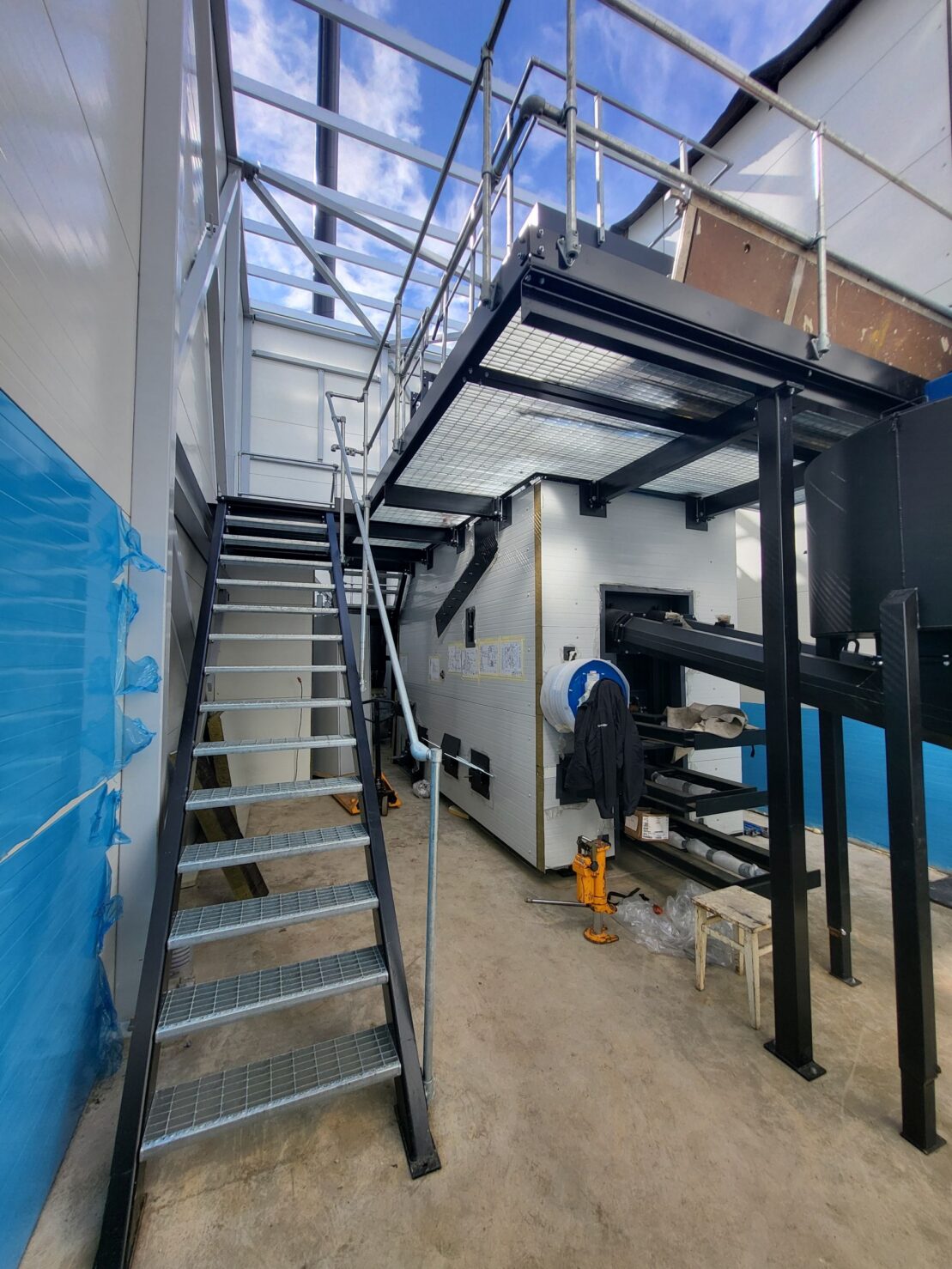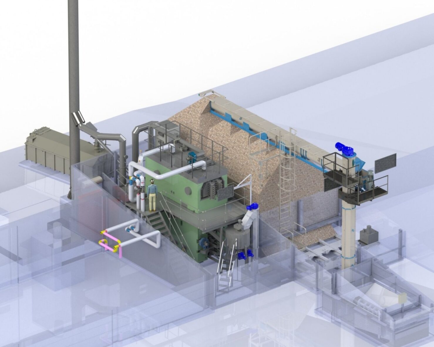 The boiler house is designed to operate with various types of biomass fuels and is equipped with automatic ash removal and a multi-cyclone flue gas cleaning system. The result is a compact, reliable, and efficient boiler house that complies with all applicable regulations and meets the client’s expectations even under challenging spatial