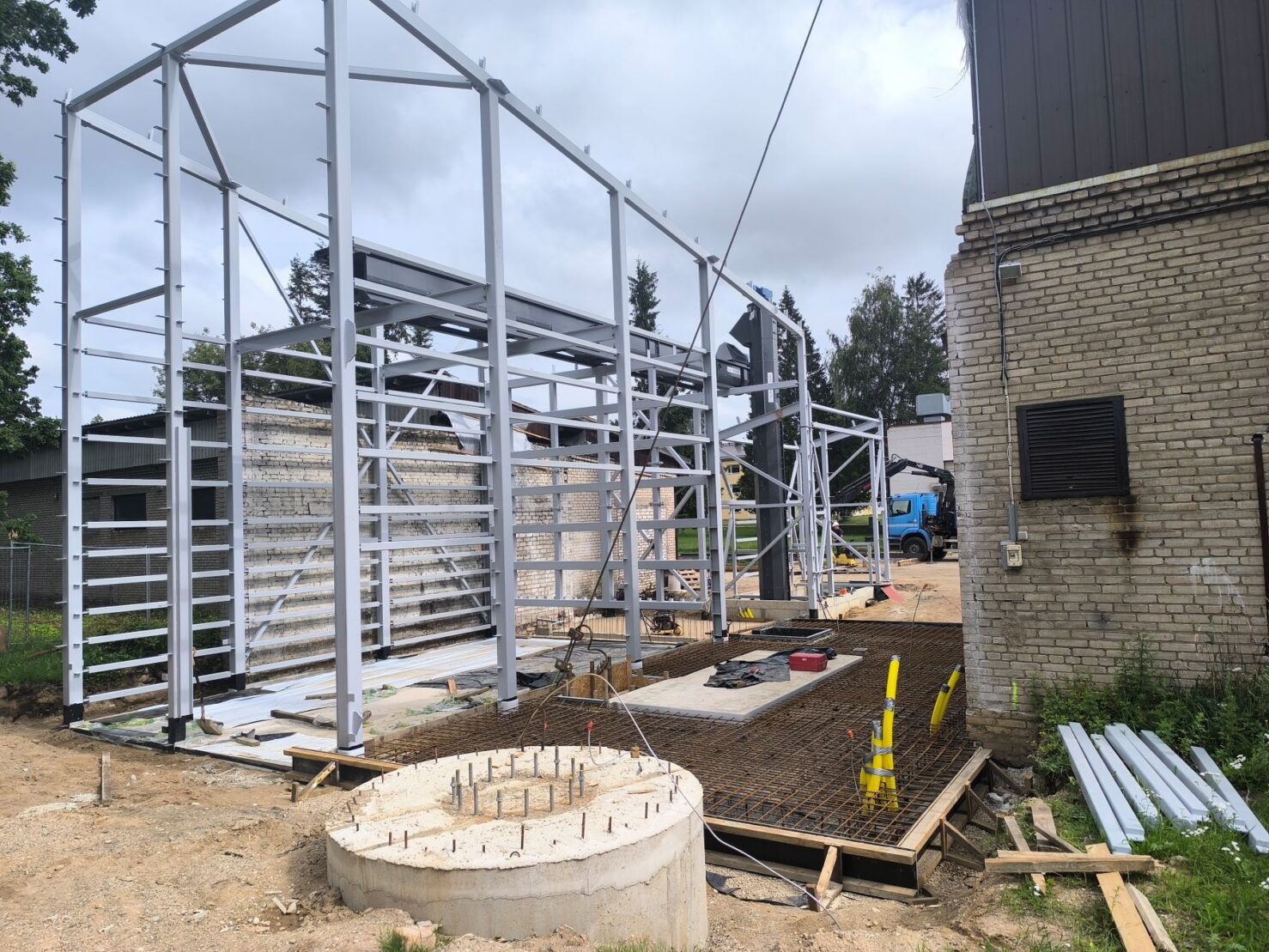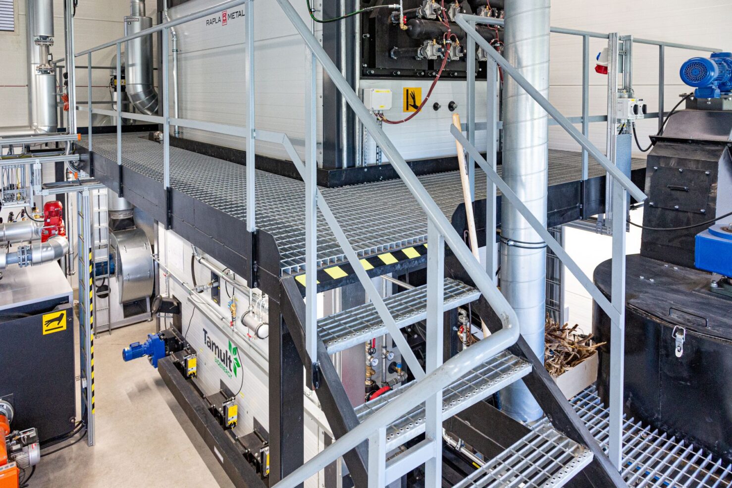 Tamult designed, manufactured, and installed a turnkey biomass boiler house in Väimela for Danpower Eesti AS, taking into account limited site conditions and the requirement to integrate the facility between existing buildings. As part of the project, the existing boiler house was reconstructed and a compact extension was built, including fuel reception, storage, and feeding systems.