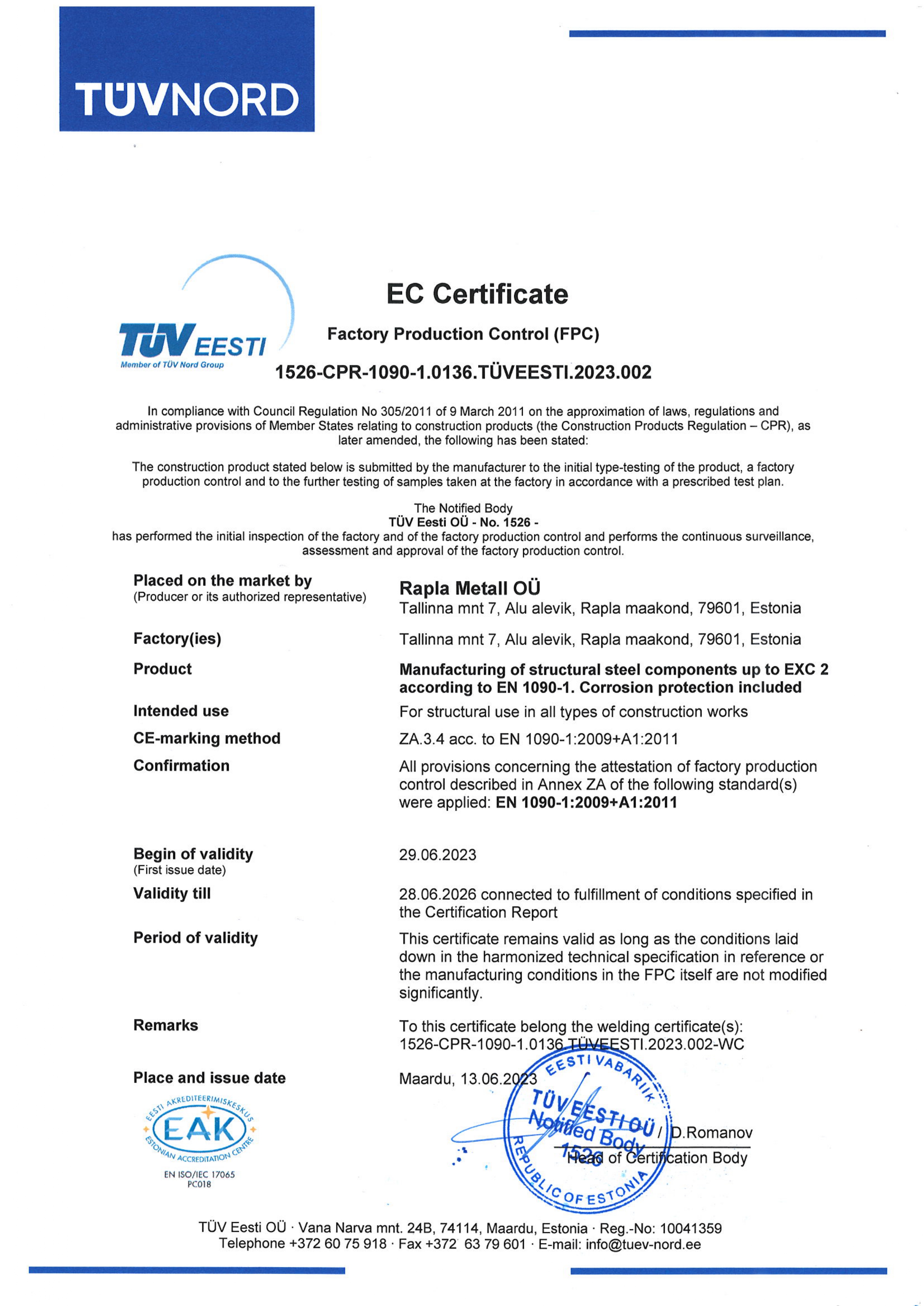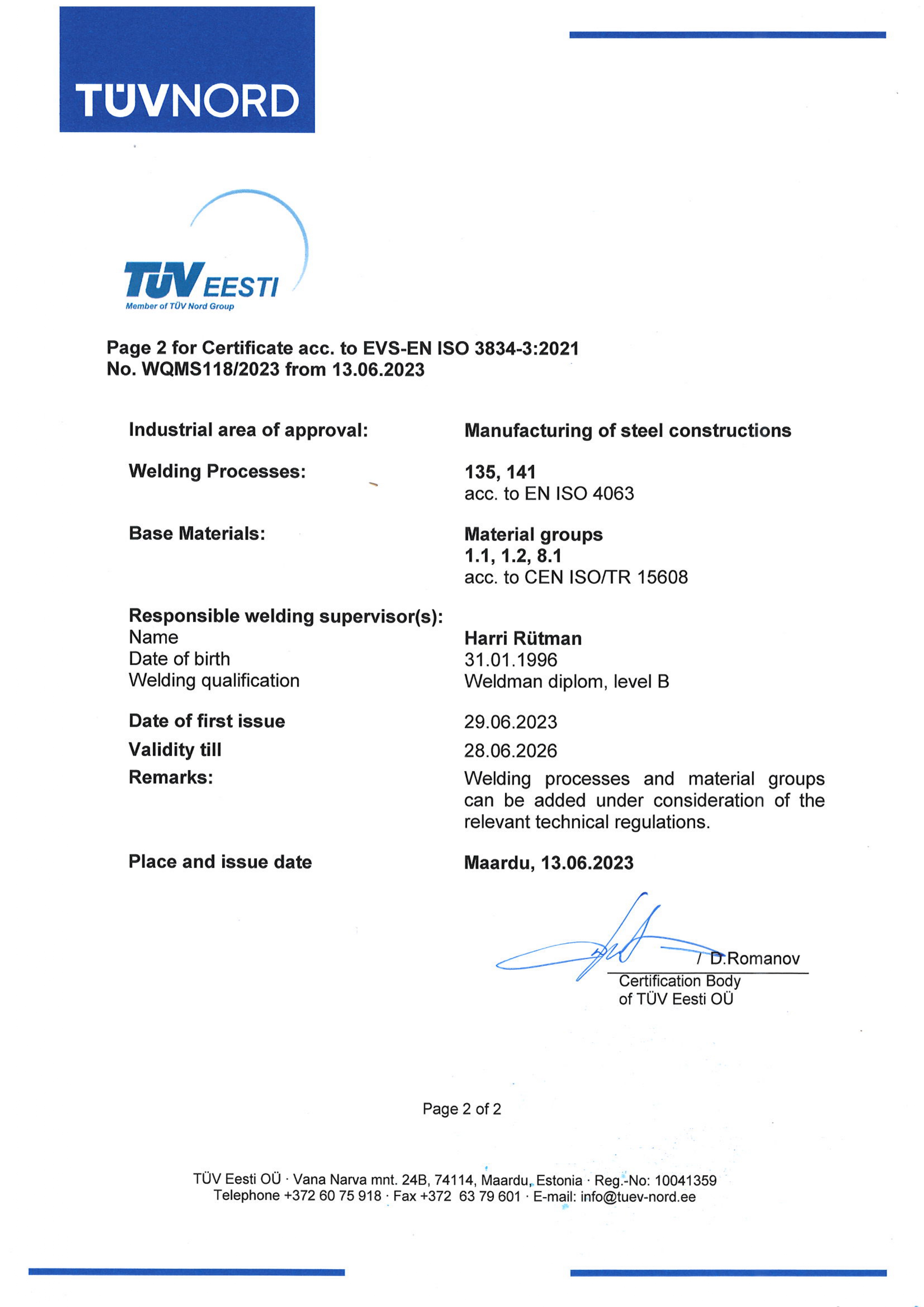 Kirjeldus | Utilitas Eesti AS-le projekteeritud, valmistatud ning installeeritud suitsugaaside kondensaator ja teraskorsten kivikorstnas Haapsalu linna katlamaja biokütuse katlale võimsusega 7 MW heitsoojuse kasulikuks ära kasutamiseks koostöös Scheuch GmbH-ga. |
